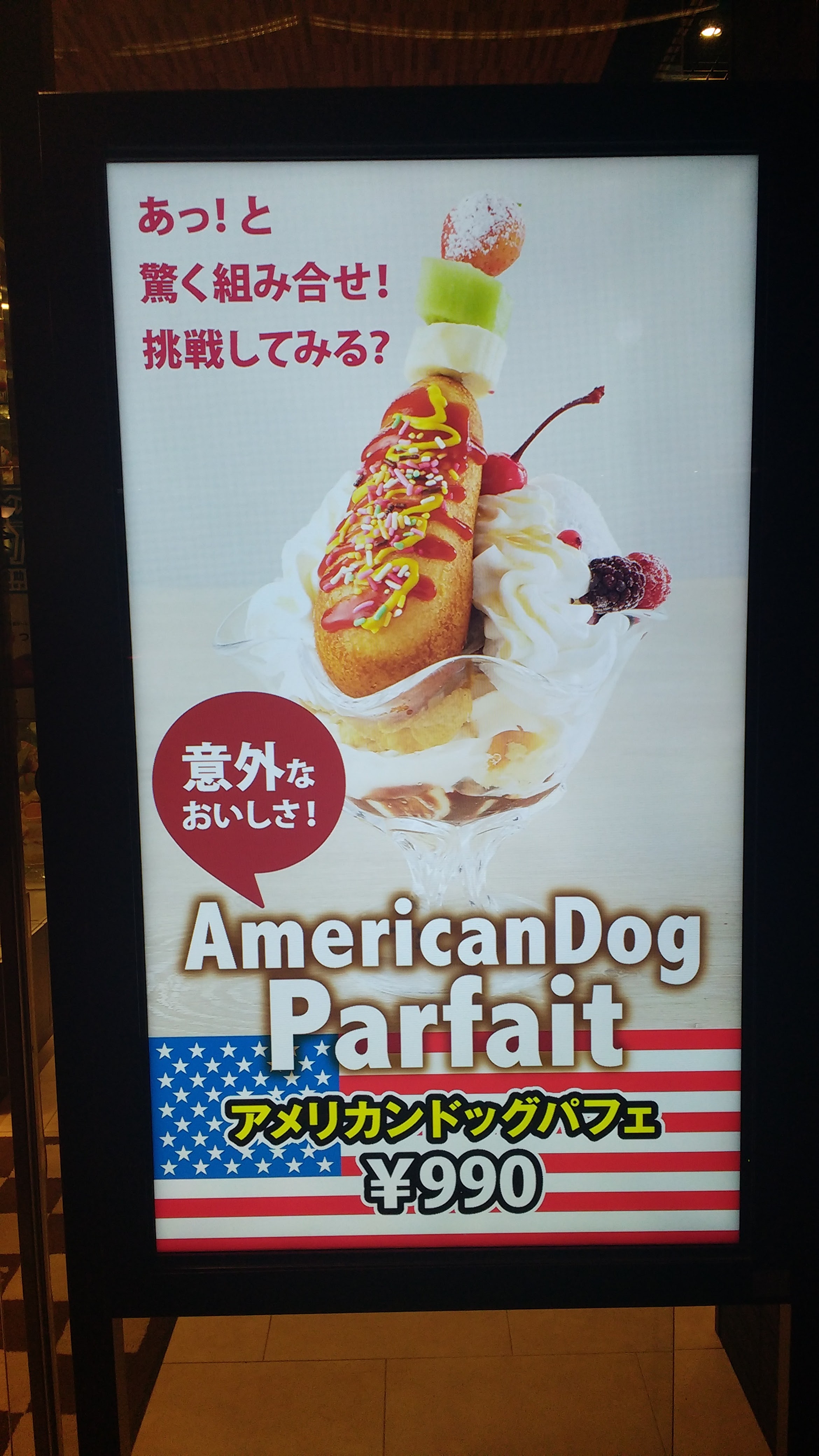 img_20160825_200525960 September 29, 2016 Return to: Traveling Japan, Part 2: KyotoFull resolution (2340 × 4160) Image navigation Previous Image Next Image While corndog sundaes don't exist in the US, there is something very american about it.